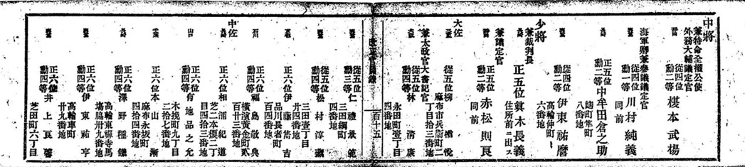 表1. 改正官員録、明治13年2月(国会図書館、https://dl.ndl.go.jp/info:ndljp/pid/779283)