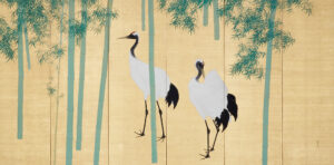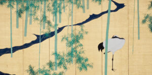 一方、竹林は、絵具を厚く塗る洋画のような技法で、竹の稈や葉の質感を際立たせています。(下の画像は、木島櫻谷《竹林白鶴》大正12年(1923)泉屋博古館東京、上は左、下は右)